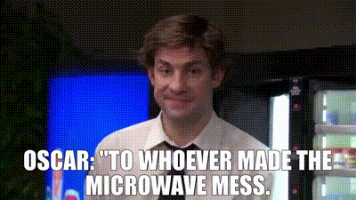 It should be identical to what we owe them, but we’re going to look at it from a different perspective. Namely, from the point of view of that Difficult Colleague™ who, for some reason, has left the microwave a mess. Or, even worse, cooked fish in it. 👀
